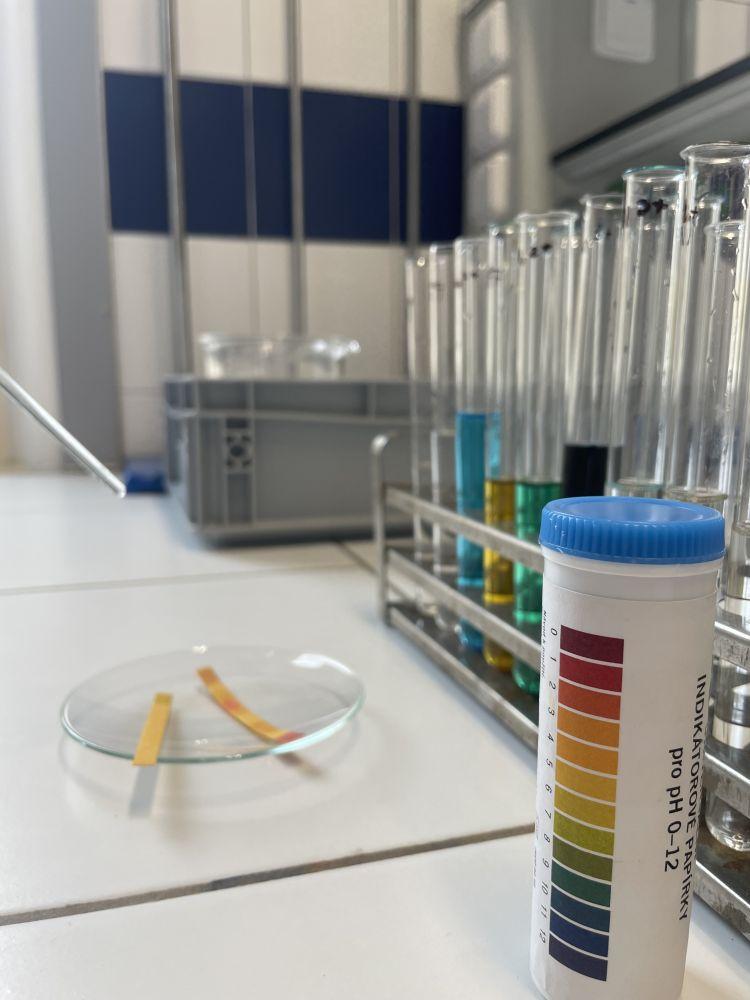 Různé metody stanovení pH – roztokem indikátoru, indikátorovými  papírky, pH metrem.